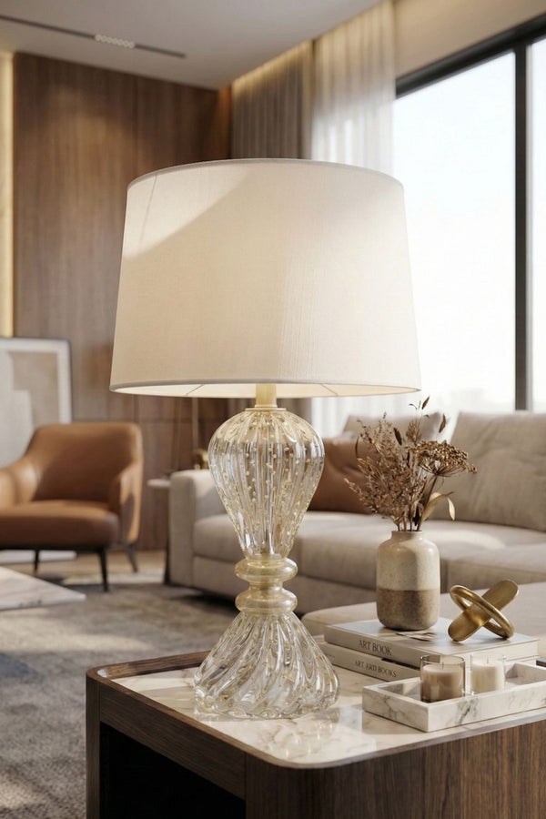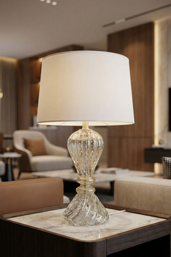 Eleve a sofisticação do seu ambiente com o Abajur Veneza. Uma peça que une o design clássico à leveza contemporânea, perfeita para quem busca requinte atemporal.