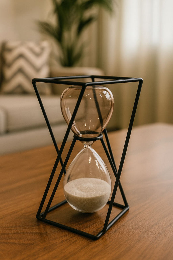 A Ampulheta Cubic é a representação perfeita do design moderno, unindo a funcionalidade clássica da marcação do tempo com a estética contemporânea das formas geométricas. Sua estrutura em metal preto desenha uma moldura firme e minimalista, protegendo e destacando a leveza do vidro em seu interior.