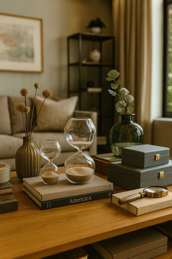 Com medidas de 18,5 × 9,5 cm e 12,5 × 6,5 cm, as Ampulhetas Lissandra equilibram presença e leveza, oferecendo um elemento decorativo capaz de complementar ambientes modernos com naturalidade e requinte.