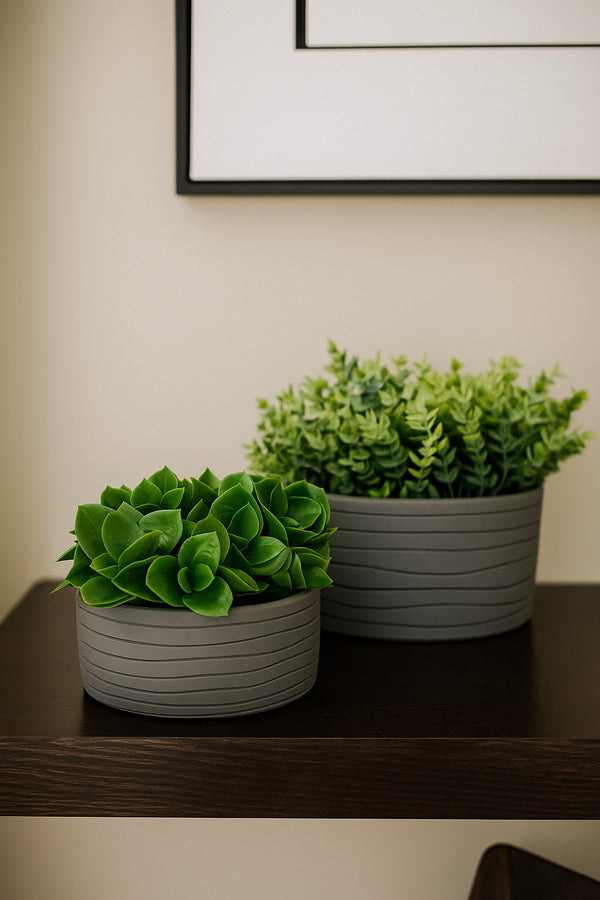 Com linhas marcantes e acabamento fosco, o Vaso Grafite Urbano é a união perfeita entre design moderno e funcionalidade. Transmite elegância minimalista e um toque arquitetônico à decoração.