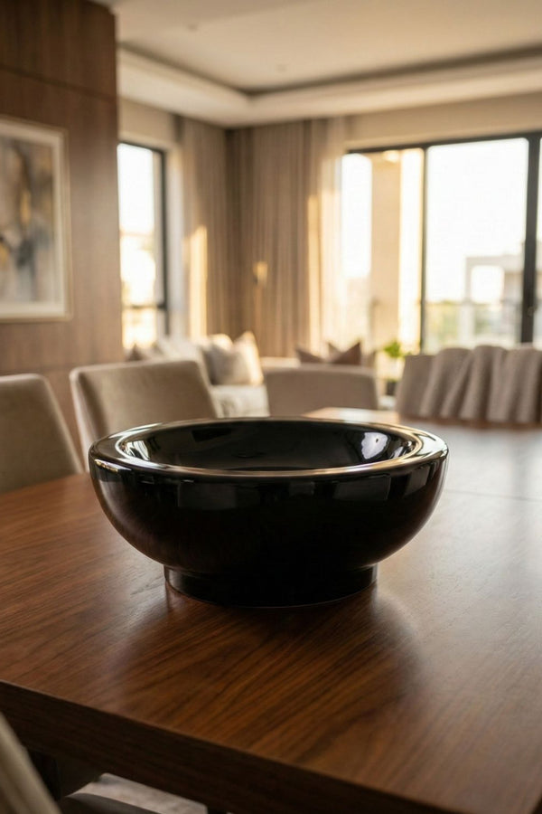 Com 32 × 12 cm, suas proporções equilibradas fazem do Valon um elemento versátil: funciona como peça protagonista em mesas de jantar, aparadores e consoles, enriquecendo a composição com textura, contraste e modernidade. O colar, disposto naturalmente sobre a borda, adiciona movimento e um toque artesanal que valoriza a estética do ambiente.