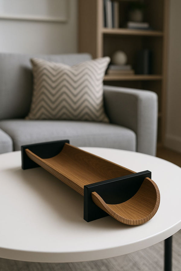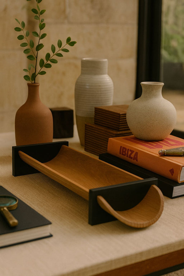 O Centro de Mesa Ébanus é uma peça de design contemporâneo que une a sofisticação da madeira com a elegância do contraste em preto. Produzido em MDF de alta qualidade, destaca-se pela forma geométrica minimalista e pela versatilidade em composições decorativas.