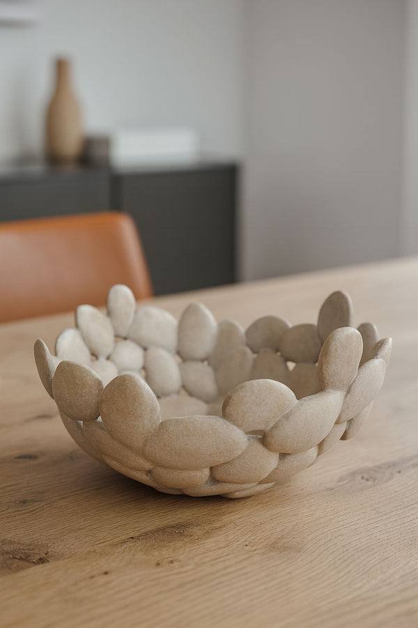 O Centro de Mesa River é uma ode ao design orgânico, capturando a serenidade das formas naturais em uma peça de destaque. Sua estrutura é composta por elementos que remetem a seixos rolados de rio, unidos de forma artística para criar uma silhueta fluida e contemporânea.