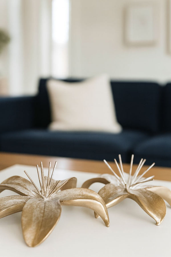 As Esculturas Flyron simbolizam a harmonia entre arte e movimento, apresentando formas delicadamente curvas que remetem a pétalas em pleno voo. Produzidas em resina metálica com acabamento dourado envelhecido, revelam um brilho elegante e sutil, capaz de enriquecer qualquer composição decorativa. Cada detalhe foi cuidadosamente trabalhado para transmitir leveza, fluidez e um toque contemporâneo que se destaca em ambientes sofisticados. Ideais para mesas de centro, aparadores ou estantes, as Flyron acrescentam um ponto de luz e requinte à decoração, tornando-se verdadeiras protagonistas na arte de compor espaços com elegância e personalidade.
