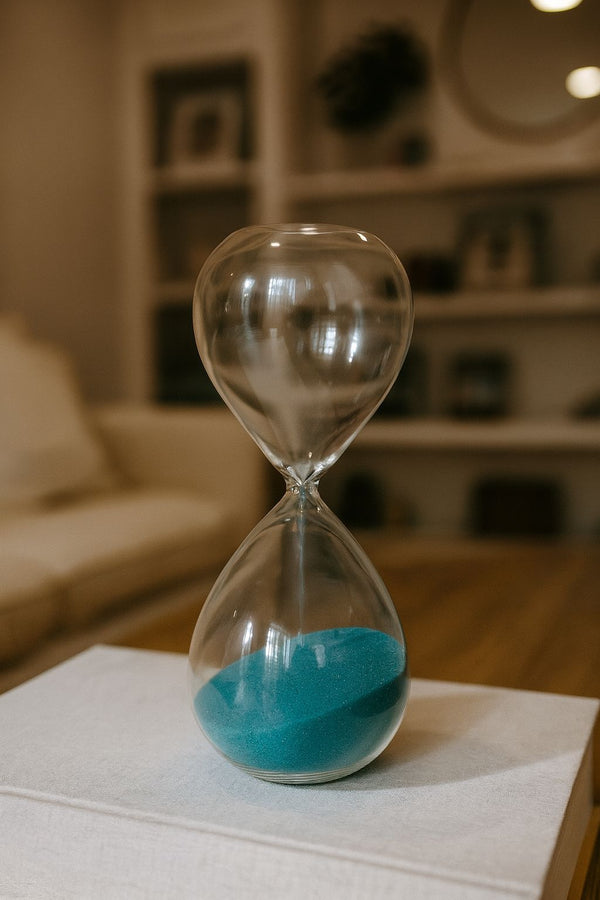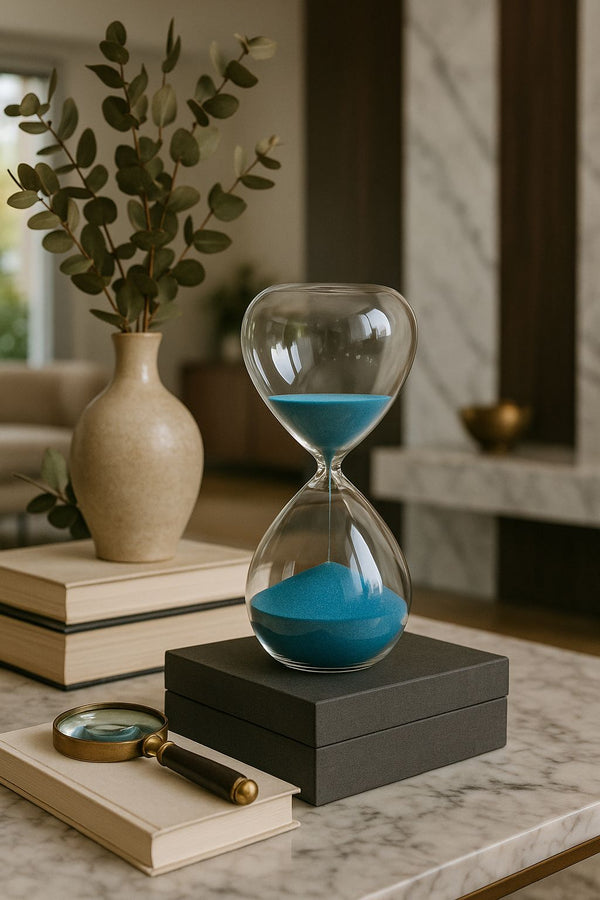 A Ampulheta Lazuli é uma peça que une arte, equilíbrio e contemplação. Seu corpo em vidro cristalino valoriza a passagem da areia azul intensa, inspirada na nobre pedra lápis-lazúli — símbolo de sabedoria, serenidade e refinamento. Cada grão desliza com suavidade, criando um espetáculo visual hipnótico que transforma o simples ato de marcar o tempo em uma experiência estética.