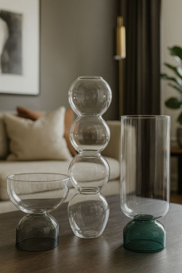 O Conjunto Vitreo é uma ode à pureza das formas e à transparência elegante do vidro. Composto por três peças de silhuetas distintas, este trio expressa equilíbrio, leveza e sofisticação em cada curva.