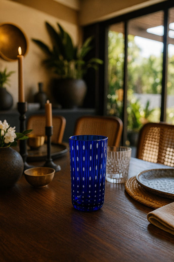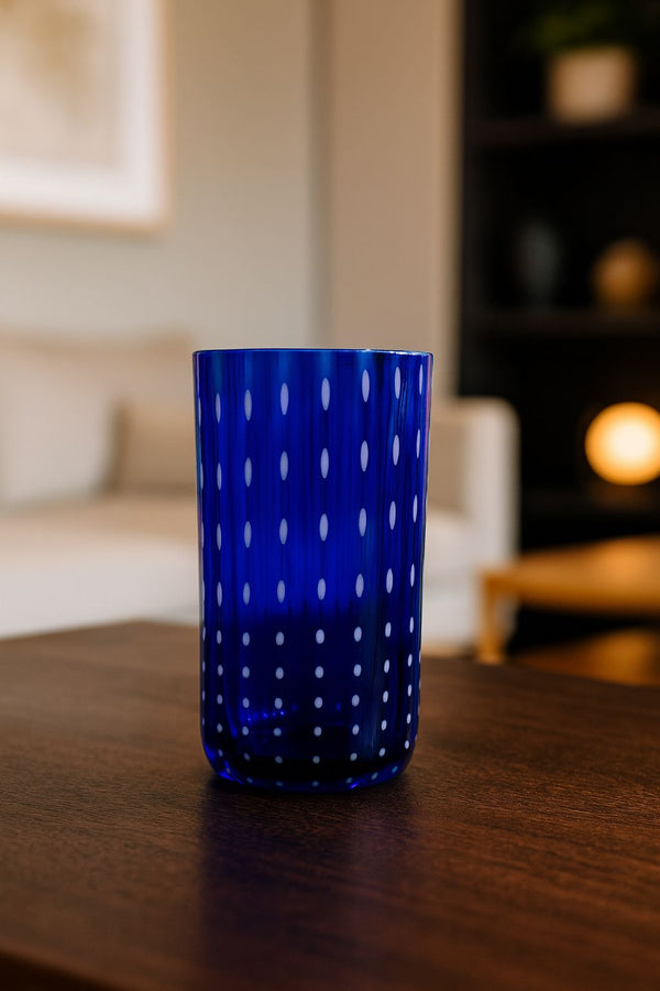 O Copo Veneza é uma verdadeira celebração do design sofisticado e atemporal. Produzido em vidro de alta qualidade, ele se destaca pelo intenso tom de azul profundo que transmite personalidade e elegância, enquanto seus delicados pontos verticais adicionam movimento, textura e charme visual. Inspirado na tradição artesanal italiana, esse copo une arte e funcionalidade, transformando o simples ato de servir em uma experiência refinada.