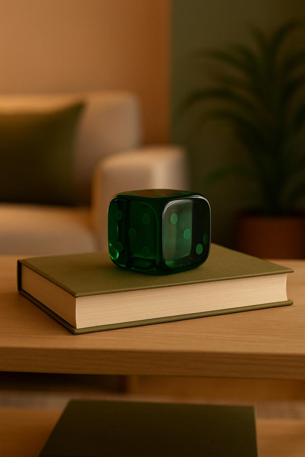 Esculpido em vidro verde translúcido, o Cube é mais do que um dado — é um convite ao inesperado. Com suas faces perfeitamente polidas e medidas simétricas de 7x7x7 cm, ele reflete a luz com elegância e sugere possibilidades a cada ângulo. Um toque de mistério sobre livros, bandejas ou aparadores, esta peça traz o charme do imprevisível à sua decoração. Ideal para ambientes sofisticados que celebram o design com personalidade.