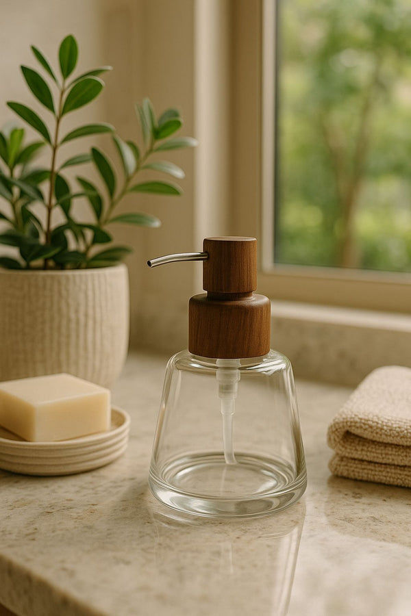 O Dispenser Brise é a tradução do equilíbrio entre funcionalidade e estética. Seu corpo em vidro transparente evidencia a pureza das formas, enquanto a tampa em madeira adiciona calor e naturalidade ao conjunto, criando uma peça de presença marcante, porém delicada. Com dimensões de 15,5 × 9,5 cm, adapta-se perfeitamente a bancadas de banheiro, lavabos ou mesmo escritórios, trazendo sofisticação a cada detalhe do espaço.