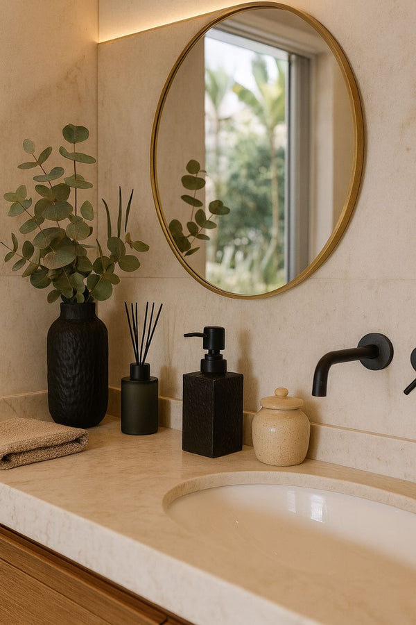 O Dispenser Volturno traduz a força da pedra em uma peça de design contemporâneo, unindo praticidade e sofisticação em cada detalhe. Seu acabamento texturizado, inspirado na imponência mineral, proporciona um toque de modernidade e exclusividade para banheiros, lavabos ou escritórios elegantes. Produzido em resina de alta qualidade, oferece resistência e fácil manutenção, garantindo durabilidade sem abrir mão do estilo.