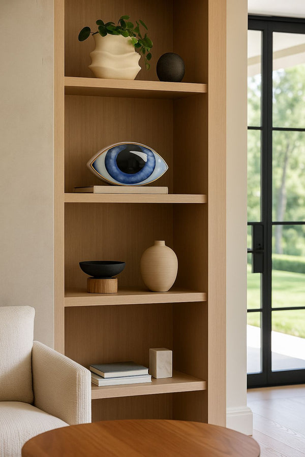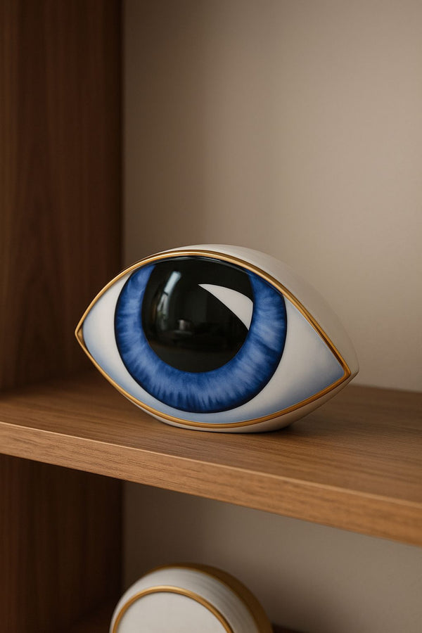 Mais do que um simples objeto decorativo, esta escultura simboliza percepção, proteção e contemplação, tornando-se um ponto focal carregado de significado. Seu design ousado e contemporâneo dialoga perfeitamente com ambientes modernos, compondo estantes, aparadores e mesas de centro com elegância e originalidade.