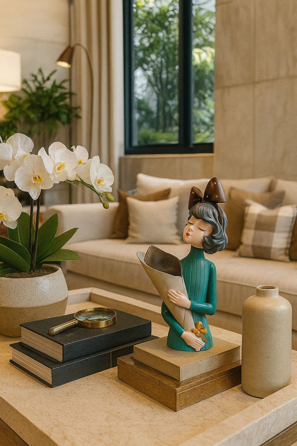 A Escultura Fiorelle é uma expressão de delicadeza e poesia em forma de arte. Retratando uma figura feminina em um momento de contemplação, a peça combina leveza e emoção em cada detalhe — do gesto suave ao modo como segura o buquê de flores, revelando sensibilidade e elegância natural. Seu acabamento acetinado em tons harmoniosos confere um toque refinado, capaz de realçar tanto ambientes clássicos quanto contemporâneos.