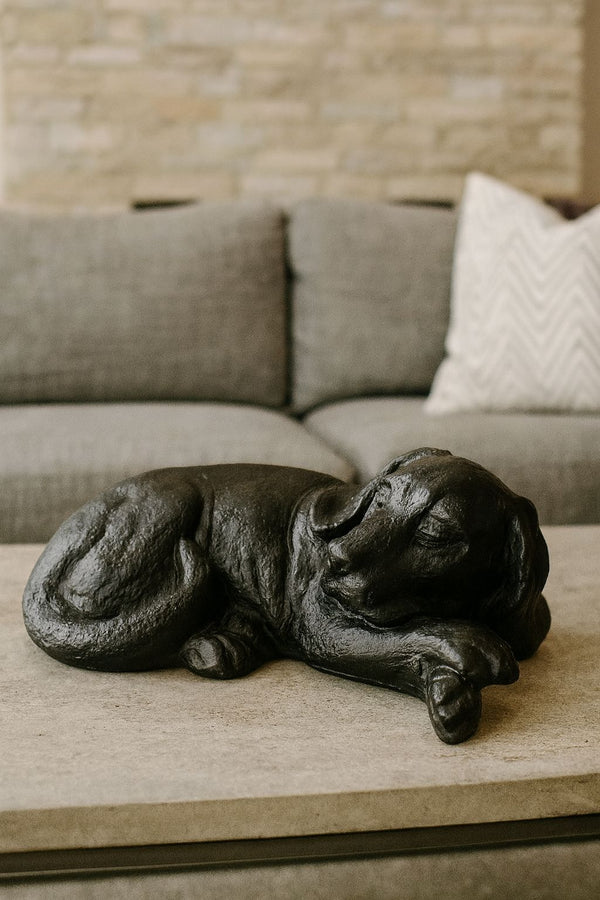 A Escultura Guardião em Repouso traduz, em formas delicadamente esculpidas, a essência da lealdade e do vínculo incondicional entre o homem e seu fiel companheiro. Retratando um cão em postura de descanso sereno, a peça transmite uma sensação de paz e proteção silenciosa, como se guardasse, mesmo em repouso, aqueles que ama.