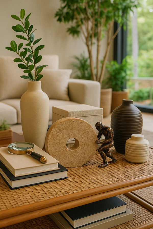 A Escultura Sísifo interpreta, em linguagem contemporânea, a eterna simbologia do esforço e da resiliência. A figura em acabamento bronze envelhecido empurra delicadamente um disco de pedra texturizada, criando uma composição de forte presença visual e significado. Com 17 × 24 cm, a peça integra com elegância mesas laterais, estantes e aparadores, destacando-se pelo contraste entre o peso da matéria e a leveza do gesto escultórico. Um objeto de decoração sofisticado, que agrega profundidade estética e narrativa ao ambiente.