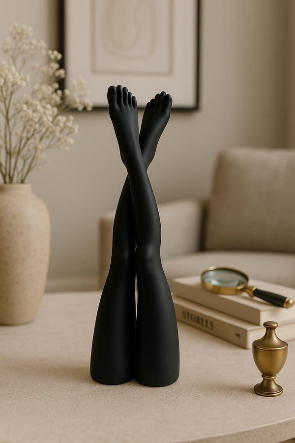 Uma peça que traduz elegância e expressão artística em sua forma mais pura. A escultura Sutileza em Movimento apresenta um par de pernas cruzadas com linhas suaves e acabamento preto fosco, evocando charme, sofisticação e uma estética contemporânea.