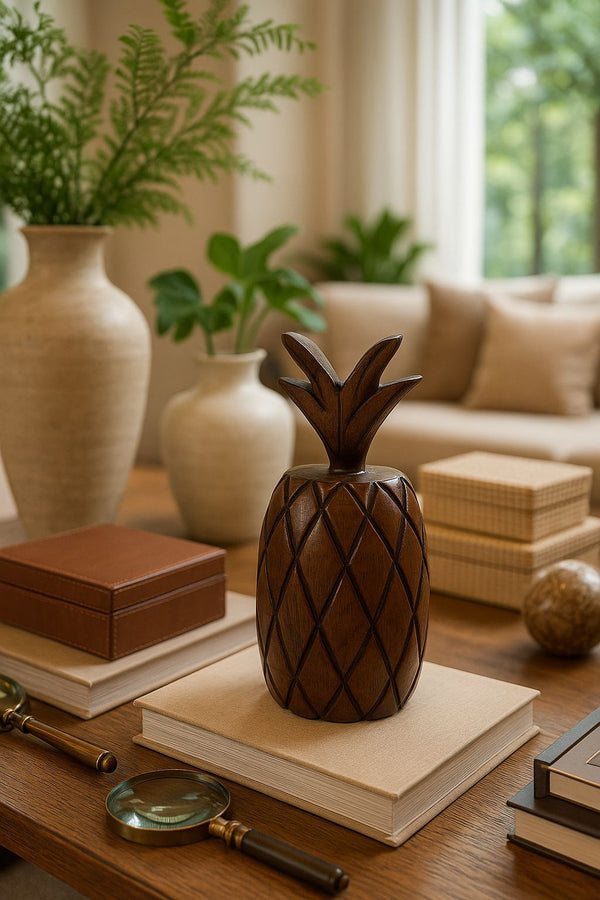 A Escultura Vennor combina elegância natural e design artesanal em uma peça que se destaca pelo entalhe preciso e pela textura rica da madeira. Seu desenho orgânico, marcado por linhas geométricas que criam profundidade e movimento, confere um toque de sofisticação a composições decorativas contemporâneas.