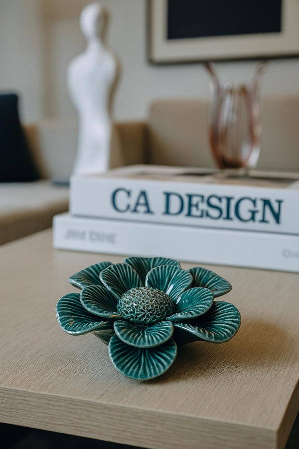 Inspirada na leveza das aquarelas e na elegância natural das flores tropicais, a Aquarelle Verde é uma peça que transcende a função decorativa para se tornar uma verdadeira obra de arte. Com pétalas delicadamente esculpidas e sulcadas em alto relevo, seu acabamento em cerâmica esmaltada traz um brilho sutil que valoriza o jogo de luz e sombra sobre o verde profundo, remetendo à textura de uma folha recém-molhada pela chuva.