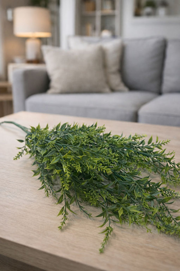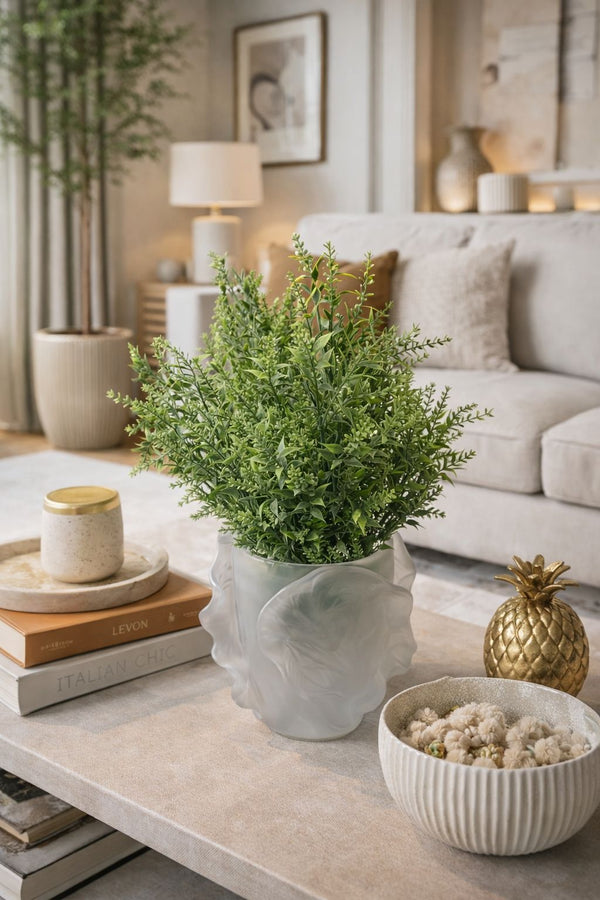 A Folhagem Verdeluce traduz a beleza do verde natural em uma peça decorativa sofisticada e extremamente realista. Seus ramos delicadamente ramificados apresentam variações sutis de tonalidade, criando profundidade visual e um efeito orgânico que traz frescor, leveza e elegância para qualquer composição.