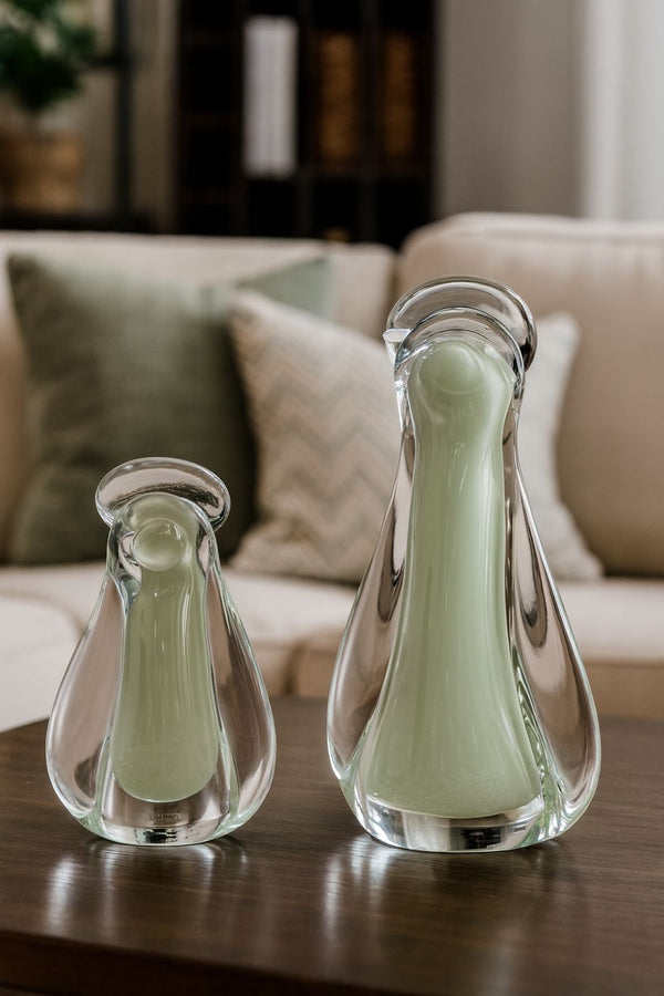 A Escultura Nossa Senhora traduz delicadeza, fé e elegância em uma peça de vidro artístico cuidadosamente moldada. Seu formato orgânico e suave remete à figura acolhedora e protetora da Virgem, enquanto o núcleo em tom translúcido cria um efeito luminoso que enriquece a percepção de profundidade e pureza. Disponível nos tamanhos 15,5 × 9 cm e 23,5 × 11 cm, é uma obra que harmoniza espiritualidade e design contemporâneo, tornando-se presença marcante em mesas laterais, aparadores ou composições decorativas refinadas.
