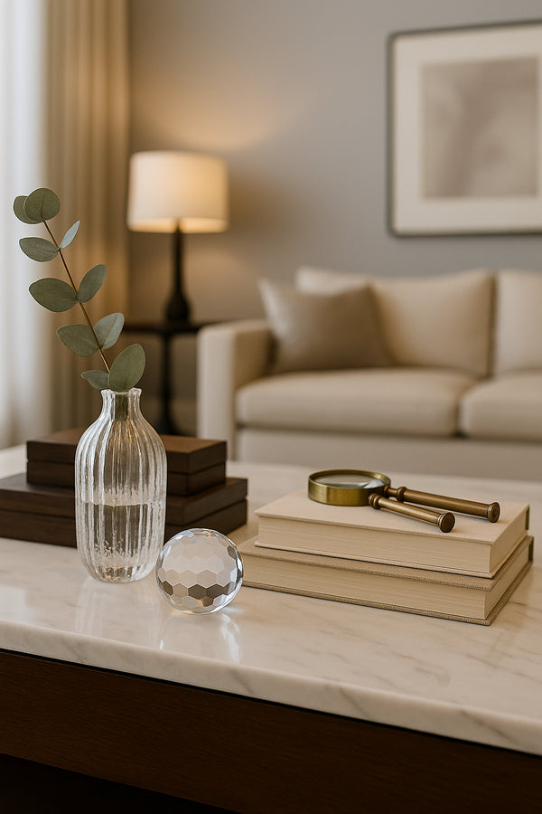 Um toque de elegância translúcida para compor ambientes sofisticados. A Órbita de Cristal é um adorno escultural com acabamento facetado que reflete a luz de forma encantadora, tornando-se o ponto de destaque em mesas, estantes ou aparadores. Ideal para quem valoriza detalhes únicos e quer transmitir requinte sem excessos. Combine com livros, caixas decorativas e vasos para uma composição atemporal e refinada.
