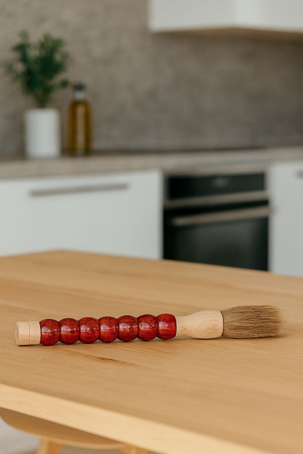 O Pincel Decorativo Rubro Arte é uma peça que transcende a funcionalidade para se tornar um elemento de sofisticação e estilo. Seu cabo em madeira natural é adornado com esferas em tom rubi laqueado, que conferem elegância e um toque artístico ao design. As cerdas naturais finalizam a composição com delicadeza, tornando-o um objeto versátil que pode ser utilizado tanto como acessório de decoração quanto como detalhe refinado em composições contemporâneas. Ideal para ser disposto sobre livros, caixas ou bandejas em mesas de centro, aparadores e escritórios, este pincel une arte, design e exclusividade em uma única peça.