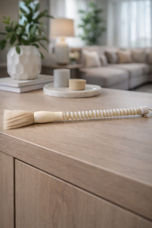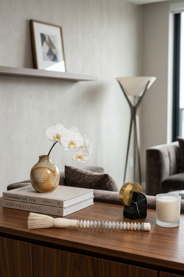 A Escova Élan é a perfeita tradução de elegância nos pequenos gestos do cotidiano. Seu design alongado, com haste esculpida em formas orgânicas e acabamento refinado, transforma um objeto funcional em um verdadeiro elemento decorativo.