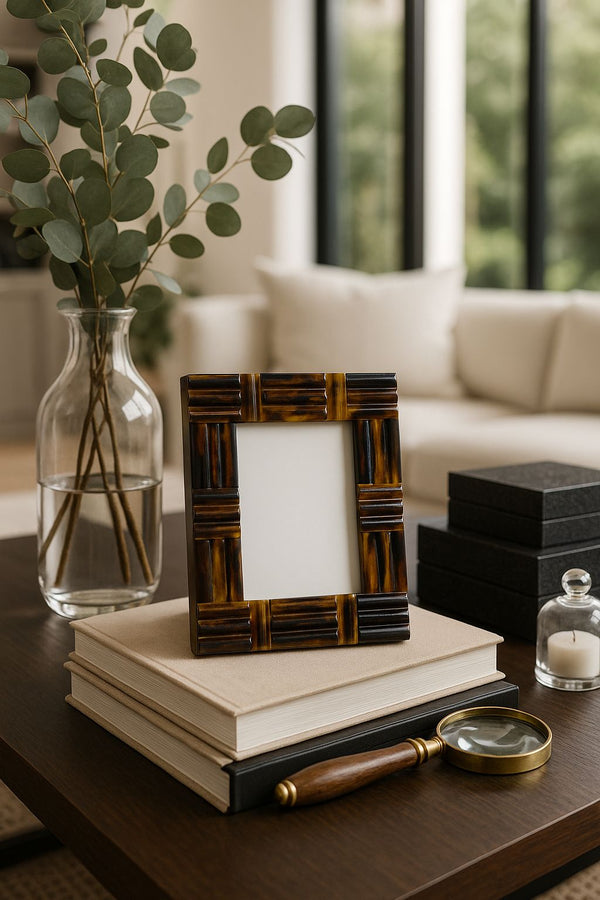 O Porta-Retrato Savona é a expressão do bom gosto e da sofisticação em cada detalhe. Com acabamento que remete ao elegante efeito tartaruga, em tons profundos de âmbar e marrom, esta peça transforma qualquer fotografia em um verdadeiro destaque decorativo. Suas medidas de 16x21 cm, com espaço interno para fotos 15x10 cm, fazem dele o acessório perfeito para ser exibido sobre aparadores, mesas de centro ou estantes refinadas. Mais do que um porta-retrato, o Savona é um elemento de estilo, capaz de agregar charme e personalidade a ambientes clássicos ou contemporâneos.