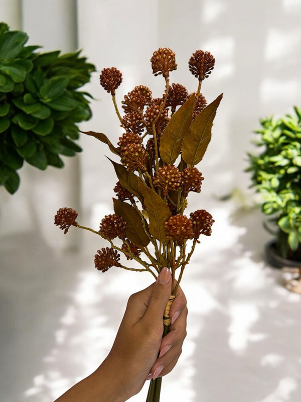 A beleza do rústico combinada com um toque sofisticado! O Ramalhete Rústico Elegance é perfeito para composições decorativas que trazem aconchego e charme ao ambiente. Com hastes amarradas por uma delicada fita, ele apresenta folhagem em tons terrosos e ramos texturizados que adicionam um visual autêntico e natural.