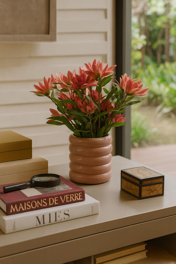 O Vaso Amabelle é a tradução do requinte contemporâneo em forma e textura. Suas curvas orgânicas e o delicado tom rosé conferem um charme natural e sofisticado, ideal para ambientes que valorizam a sutileza e a estética refinada. Cada detalhe foi cuidadosamente pensado para transmitir leveza e elegância, resultando em uma peça que dialoga com diferentes estilos de decoração — do minimalista ao clássico moderno.