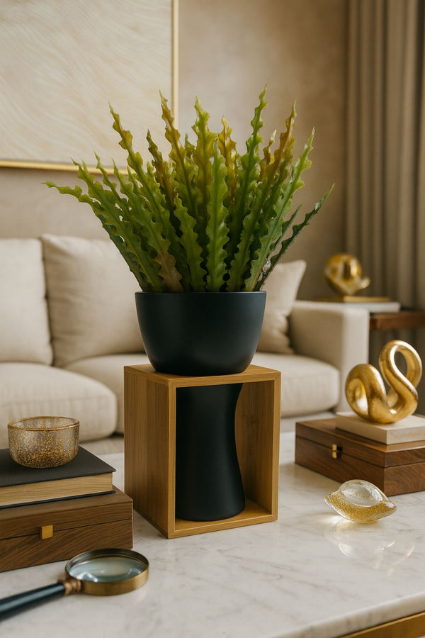 O Vaso Eclipse é uma peça de impacto visual e elegância atemporal, criada para compor ambientes sofisticados com personalidade. Seu design minimalista em tom negro profundo remete à força enigmática de um eclipse, trazendo modernidade e exclusividade à decoração.