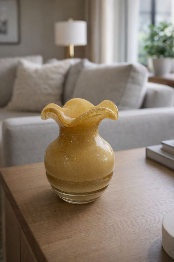 O design com borda ondulada traz movimento e sofisticação, evocando formas naturais e tornando cada detalhe ainda mais expressivo. Compacto e versátil, é perfeito para compor aparadores, mesas laterais ou estantes, seja como peça única ou em composição com outros elementos decorativos.