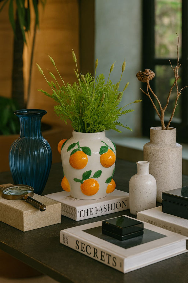 Mais do que um vaso, trata-se de um objeto de arte que irradia vivacidade e elegância, capaz de transformar aparadores, mesas ou estantes em composições de rara harmonia. O Giardino d’Arance carrega em cada detalhe a essência da natureza celebrada sob a luz do sol, tornando-se protagonista em qualquer ambiente que busca unir sofisticação e encanto natural.