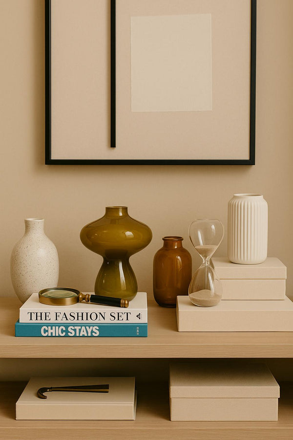 Com 23 cm de altura, é uma peça versátil e de forte presença estética: valoriza desde composições mais densas com caixas-livros, ampulhetas e lupas, até aparições solo sobre mesas de centro, aparadores ou estantes minimalistas.