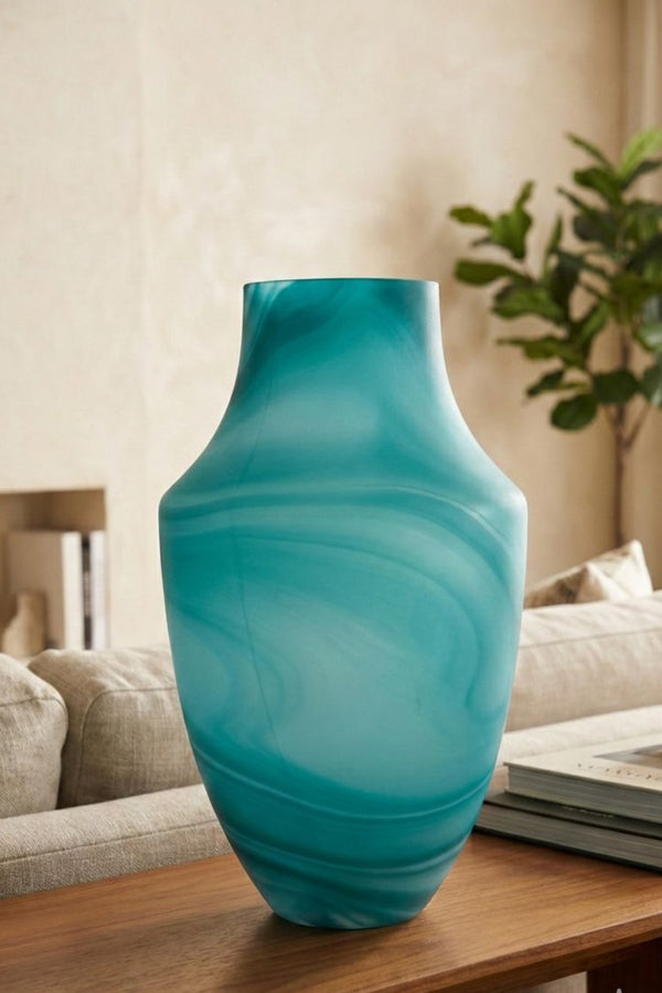 Eleve o padrão da sua decoração com o Vaso Escultura Oceano. Com um design orgânico e curvas elegantes, esta peça apresenta uma deslumbrante tonalidade azul turquesa que traz a serenidade e a fluidez das águas para o seu ambiente. Seu acabamento acetinado, marcado por sutis veios marmorizados, confere um toque de exclusividade e sofisticação a qualquer espaço.