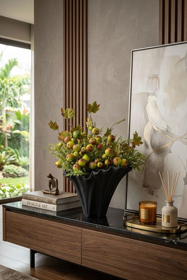 O vaso Onda Black expressa movimento e elegância em uma única peça. Seu design inspirado nas formas naturais revela curvas onduladas que remetem à fluidez das ondas, criando uma estética leve, porém marcante.
